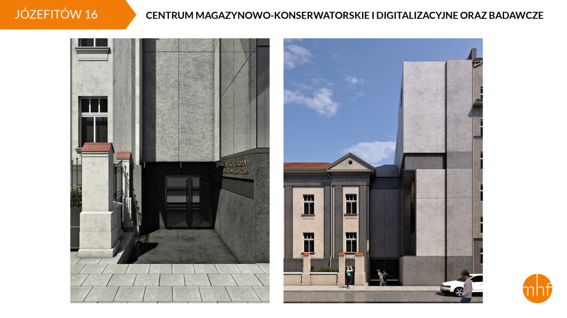 Obecna siedziba Muzeum pełni funkcje magazynowe, biurowe, administracyjne i upowszechnieniowe, mieści ekspozycję stałą oraz wystawy czasowe, bibliotekę z czytelnią, księgarnię oraz pracownię konserwatorską i digitalizacyjną. Po kapitalnym remoncie powstanie tu nowoczesne centrum magazynowo-konserwatorskie i digitalizacyjne oraz badawcze. Będzie to przestrzeń otwarta dla specjalistów zajmujących się różnymi aspektami medium fotograficznego. Ambicją Muzeum jest stanie się żywym, wyraźnie zaznaczonym na mapie Polski i Europy ośrodkiem zajmującym się w pierwszej kolejności obrazem fotograficznym. Szeroka perspektywa badawcza oraz edukacyjna będą podstawowymi kontekstami określającymi kierunek rozwoju MHF. Powierzchnia użytkowa istniejącego budynku Muzeum przy ul. Józefitów 16 to obecnie ok. 1.300,00 m2, po przebudowie ma wzrosnąć do 1.810,00 m2.