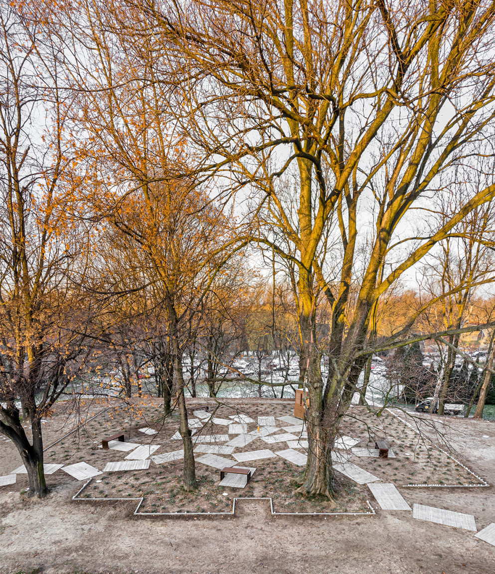 Miejsce pamięci po dawnej żydowskiej społeczności Oświęcimia zostało upamiętnione poprzez zastosowanie minimalnych i subtelnych elementów architektonicznych, które skłaniają do refleksji.