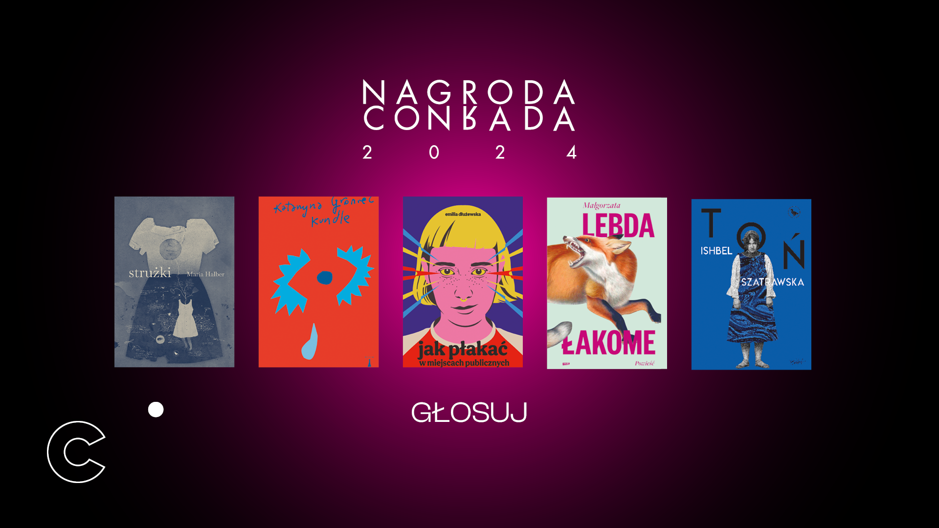O tym, kto zdobędzie Nagrodę Conrada, zadecydują w połowie głosy kapituły, a w połowie – publiczności. Formularz jest już dostępny na stronie Festiwalu Conrada – głosowanie potrwa do 25 października do godz. 23.59. Gala Nagrody Conrada odbędzie się 27 października o godz. 19.00 w Małopolskim Ogrodzie Sztuki (Scena MOS Teatru im. J. Słowackiego w Krakowie, ul. Rajska 12). Tradycyjnie będzie to zwieńczenie Międzynarodowego Festiwalu Literatury im. Josepha Conrada. Galę poprowadzi dziennikarka i krytyczka literacka Georgina Gryboś, a wykład mistrzowski wygłosi pisarka Dorota Masłowska.