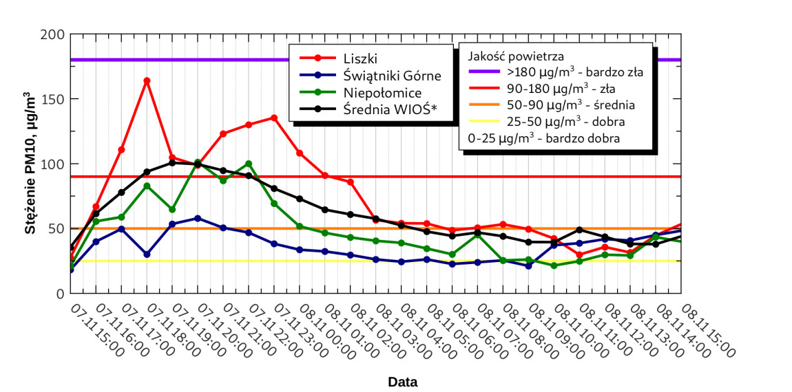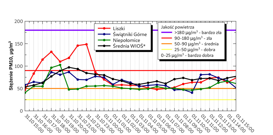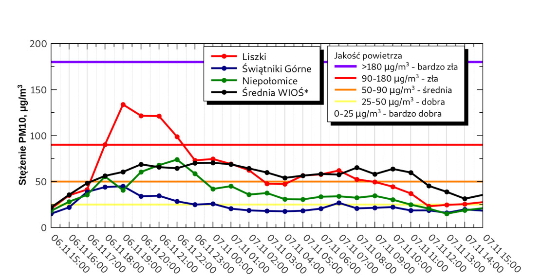 - 4.11 do 15.11: pomiary jakości powietrza w Liszkach, Świątnikach Górnych, Niepołomicach,
