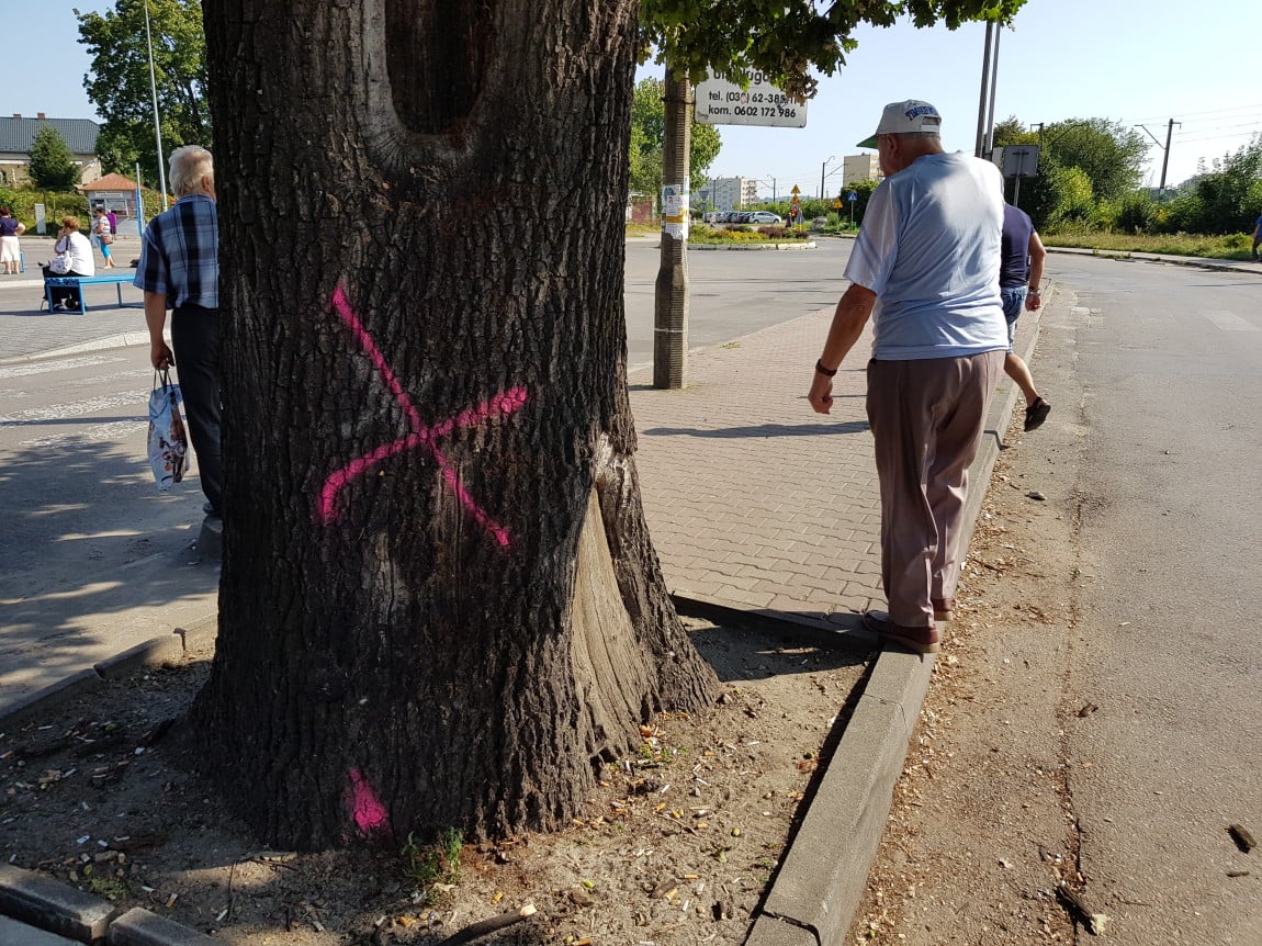 "Wycinamy drzewa chore, zagrażające przechodniom. W tym wypadku trzeba będzie wstrzymać wycinkę drzewa aż do decyzji starosty" - tłumaczy burmistrz Kosowski.
