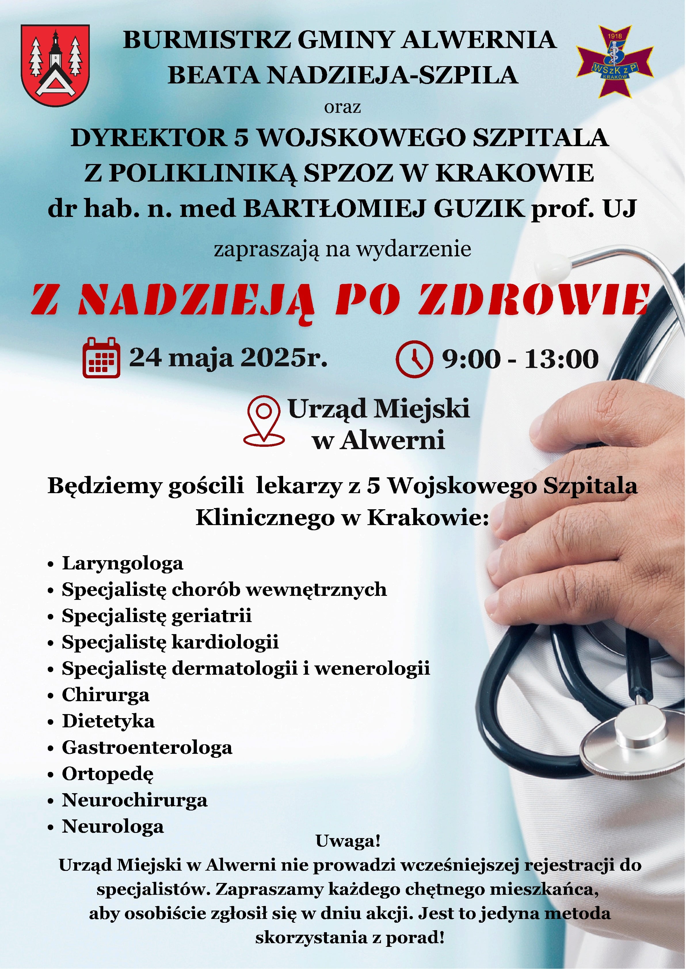 Będziemy gościć około dwudziestu specjalistów, m.in. dwóch laryngologów, specjalistę geriatrii, chorób wewnętrznych i kardiologii, dietetyka, specjalistę dermatologii i wenerologii, gastrologów, ortopedów, neurochirurga, chirurga ogólnego i neurologów. Podczas akcji można będzie zrobić sobie EKG, USG oraz wykonać echo serca.