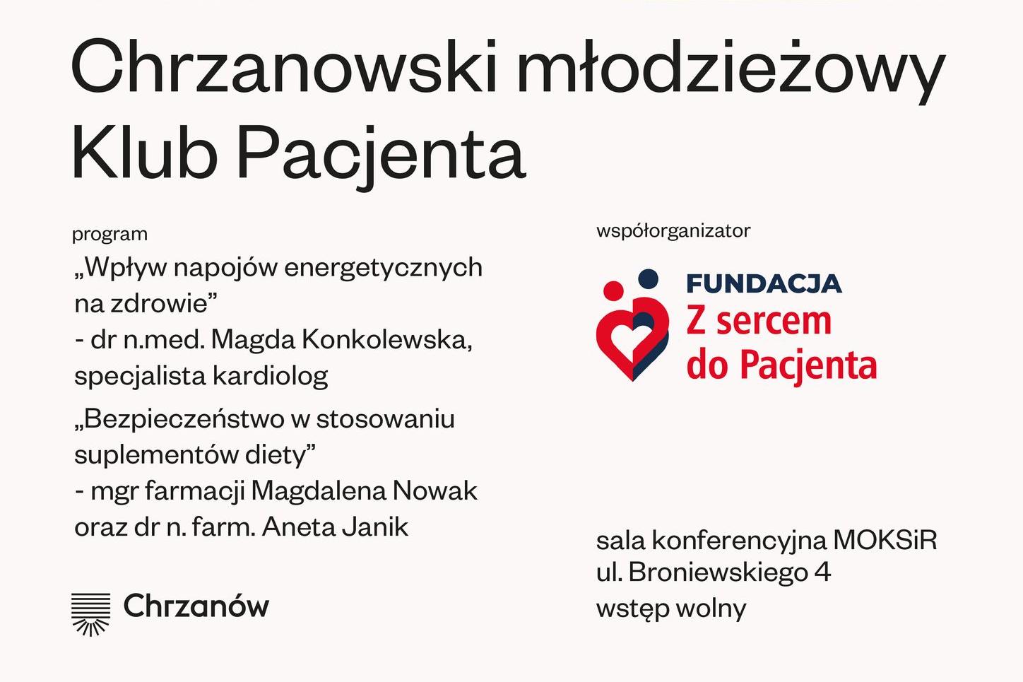 Bezpłatne wykłady z kardiolożką i farmaceutką odbędą się 24 maja o godzinie 10 w Miejskim Ośrodku Kultury Sportu i Rekreacji w Chrzanowie. Już teraz przyjmowane są zapisy od zainteresowanych grup szkolnych, ponieważ liczba miejsc jest ograniczona. Współorganizatorem akcji jest Fundacja Z sercem do Pacjenta.