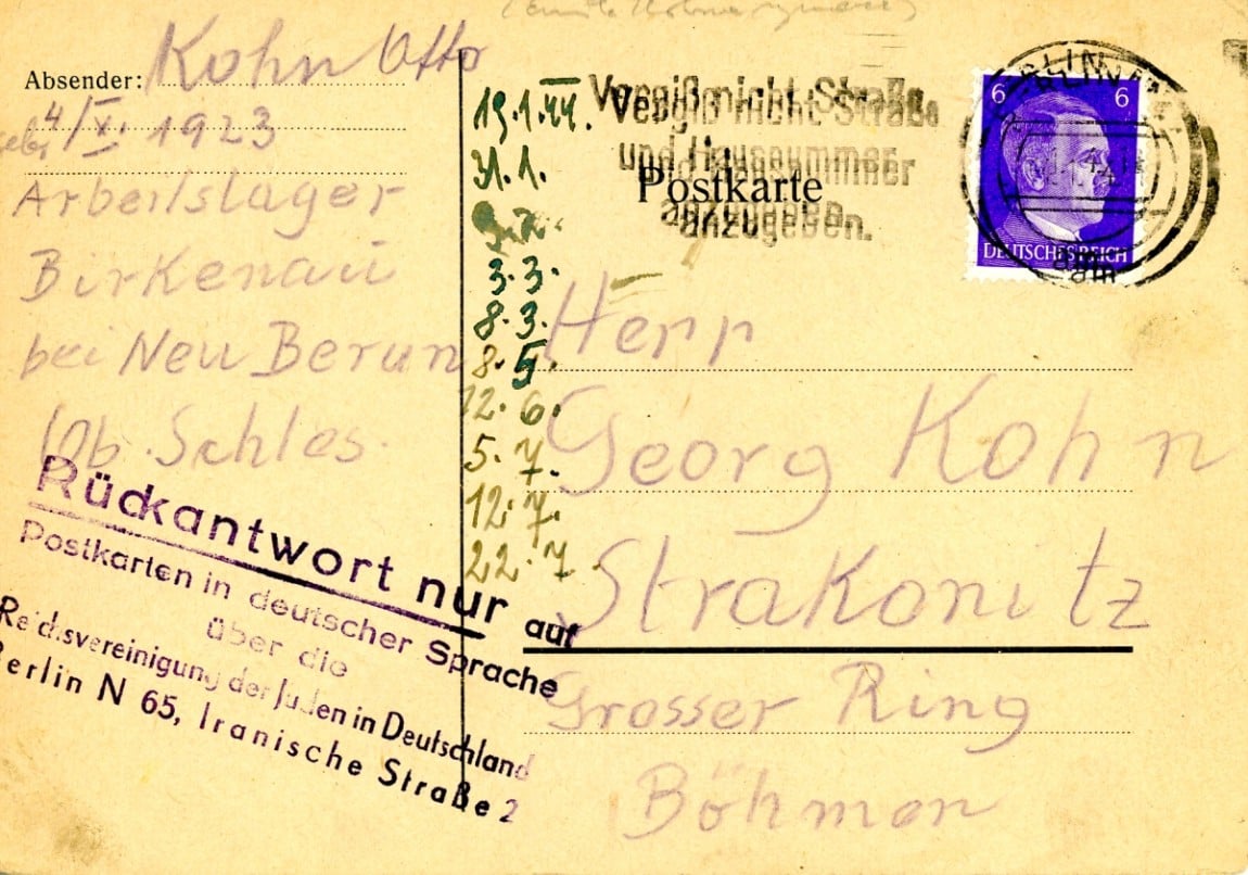 Szczególne miejsce zajmują cztery karty pocztowe wysłane z Auschwitz w ramach tzw. Briefaktion. Aby uspokoić nastroje panujące wśród Żydów przebywających w getcie Theresienstadt w Protektoracie Czech i Moraw, władze KL Auschwitz zezwoliły więźniom deportowanym stamtąd na wysłanie kart pocztowych z krótką informacją, iż nadawcy przebywają w obozie pracy w Birkenau. „Karty pocztowe na rozkaz władz obozowych były antydatowane, co esesmani uzasadniali tym, że czas ich wysłania opóźni się z uwagi na konieczność poddania korespondencji cenzurze. W chwili, kiedy trafiły do odbiorców, ich nadawcy już zginęli, zgładzeni w komorach gazowych w Birkenau” – powiedział szef archiwum Muzeum Wojciech Płosa.