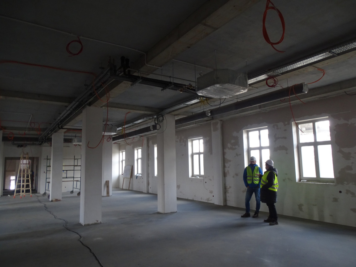 Prace remontowe rozpoczęły się wiosną ub.r. "Pomimo trudnej sytuacji epidemicznej udaje się je realizować bez większych opóźnień. Do chwili obecnej m.in. wymieniona została więźba dachowa i dobudowana nową część, w której zamontowano konstrukcję szybu windowego. Wstawione zostały okna i rozprowadzono instalacje wewnątrz budynku. Położono także wewnętrzne tynki i wylewki" – powiedziała Dorota Mleczko.