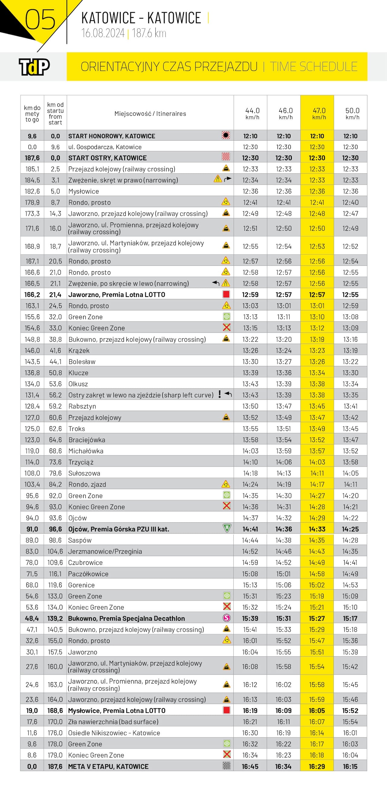 Utrudnienia 16 sierpnia piątek etap 5 Katowice - Katowice – w godz. 13.35 -14.41