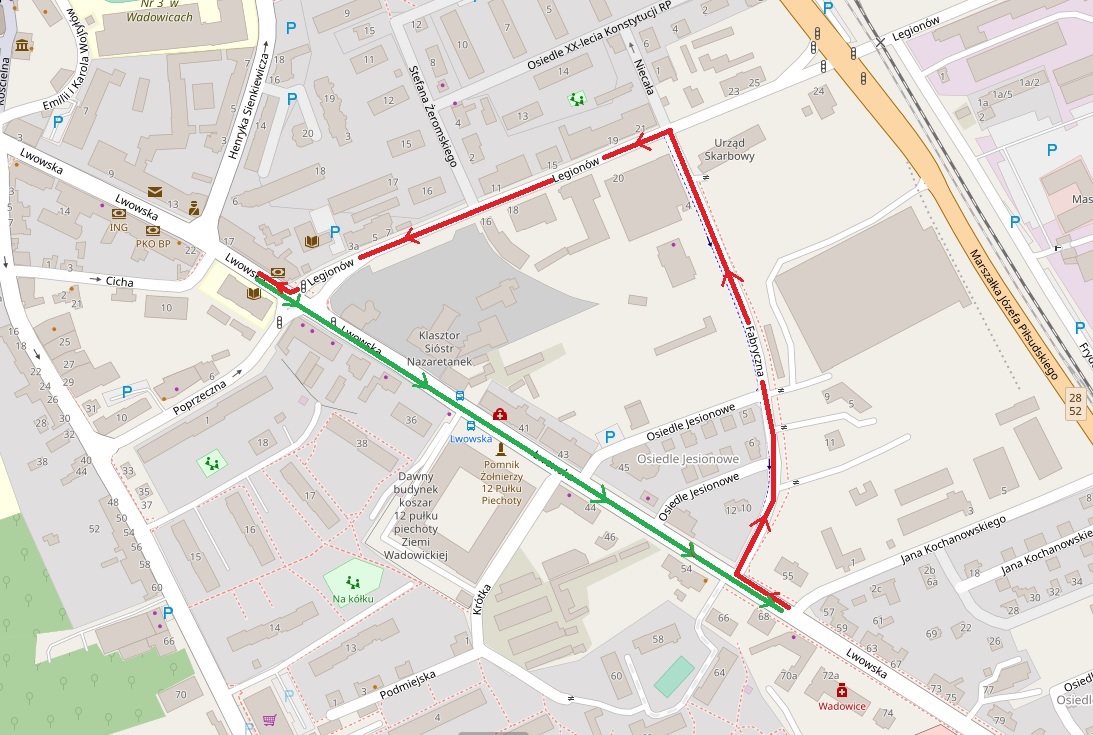 Jadąc w kierunku rynku od jutra kierowcy będą musieli korzystać z objazdu ulicą Fabryczną i Legionów. W kierunku wyjazdu w stronę Kalwarii Zebrzydowskiej ruch nie zostanie zmieniony.