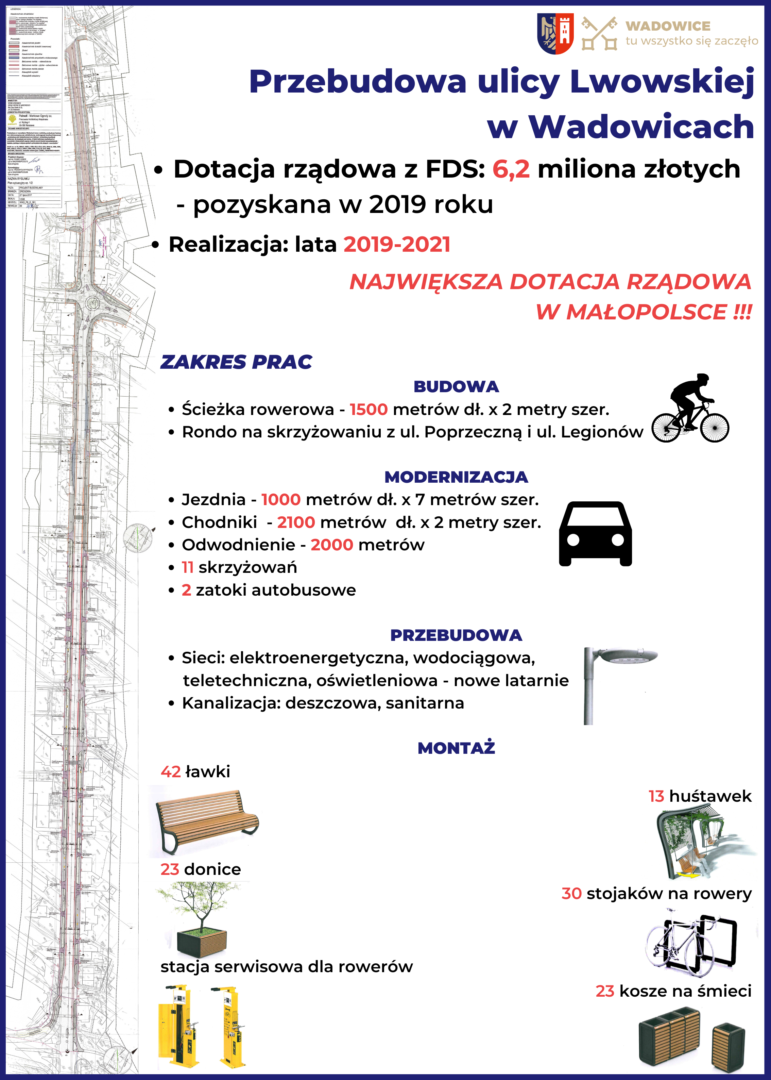 Remont ulicy Lwowskiej to największa inwestycja w Wadowicach. Prace mają zakończyć się w listopadzie przyszłego roku. Koszt wszystkich robót to ponad 14 milionów złotych.
