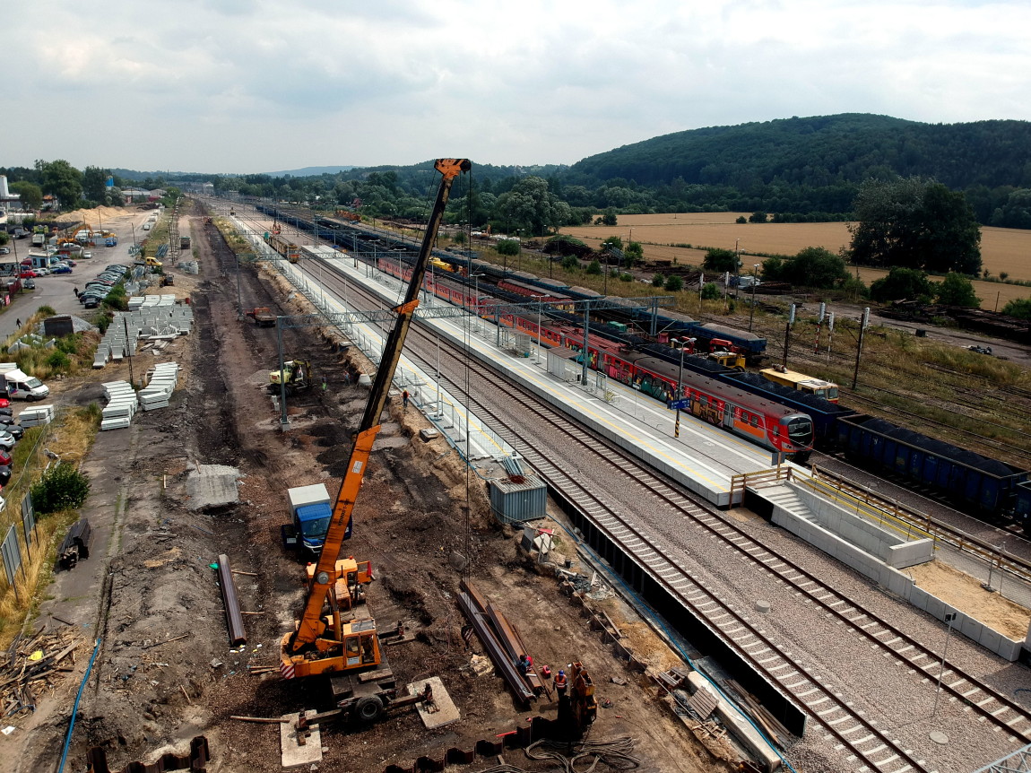Na trasie w kierunku Katowic, w Zabierzowie, Rudawie i Krzeszowicach podróżni już korzystają z nowych peronów. Przebudowa obejmuje również stację w Trzebini. Powstają nowe perony, przejścia podziemne i wiadukty drogowe. Kolej usprawnia komunikację w regionie.