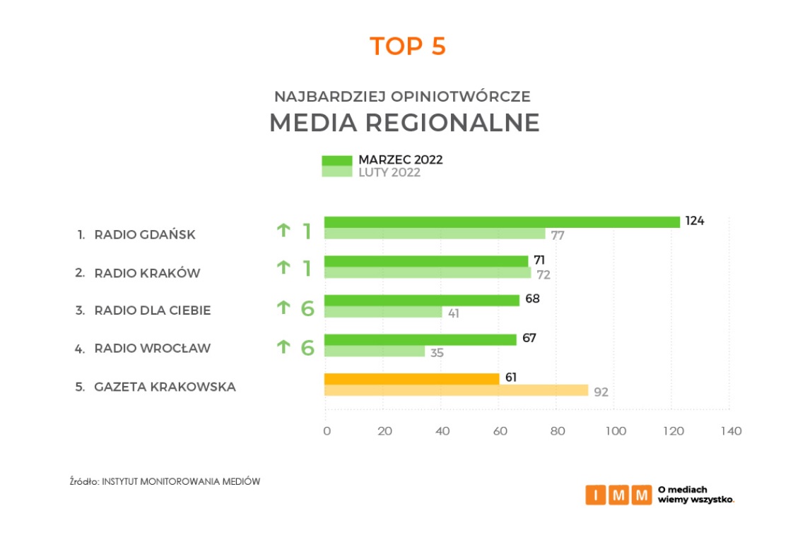 Analizę częstotliwości cytowań poszczególnych mediów przez inne media przeprowadzono na podstawie 29 997 przekazów pochodzących z monitoringu prasy, radia i telewizji oraz portali internetowych, w których pojawiały się cytowania ze wskazaniem nazwy mediów prasowych, serwisów internetowych, stacji radiowych i telewizyjnych lub tytuły ich programów. Badanie dotyczy okresu 1-31 marca 2022 roku.