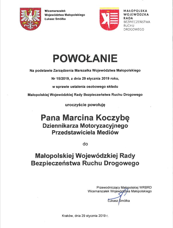 "Po raz pierwszy w historii członkiem rady będzie przedstawiciel mediów. To zaszczyt, ale i zobowiązanie, bo trzeba pomóc Radzie wypracowywać takie standardy, które rzeczywiście wpłyną na poprawę bezpieczeństwa w ruchu drogowym" - mówi Marcin Koczyba z redakcji motoryzacyjnej.