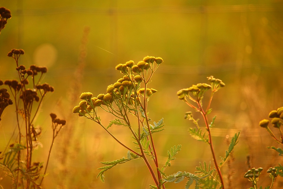 Tam wszystko zakwitało później, ale musiało się bardzo spieszyć, by zdążyć przed jesiennym, lodowatym wiatrem. W sierpniu kwitła już nawłoć i inny niepozorny, żołty kwiatuszek - wrotycz.