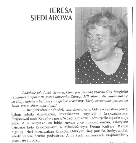 W Jej bogatym archiwum znajdują się rozmowy m.in. o Karłowiczu, Szymanowskim, Jerzym Kosińskim, a także wzruszający reportaż o Bohatyrowiczach, potomkach tamtych Bohatyrowiczów z "Nad Niemnem" Orzeszkowej. Nagrania Teresy Siedlarowej znajdują się nie tylko w Archiwum Radia Kraków, ale też w Bibliotece Jagiellońskiej, Muzeum w "Atmie".