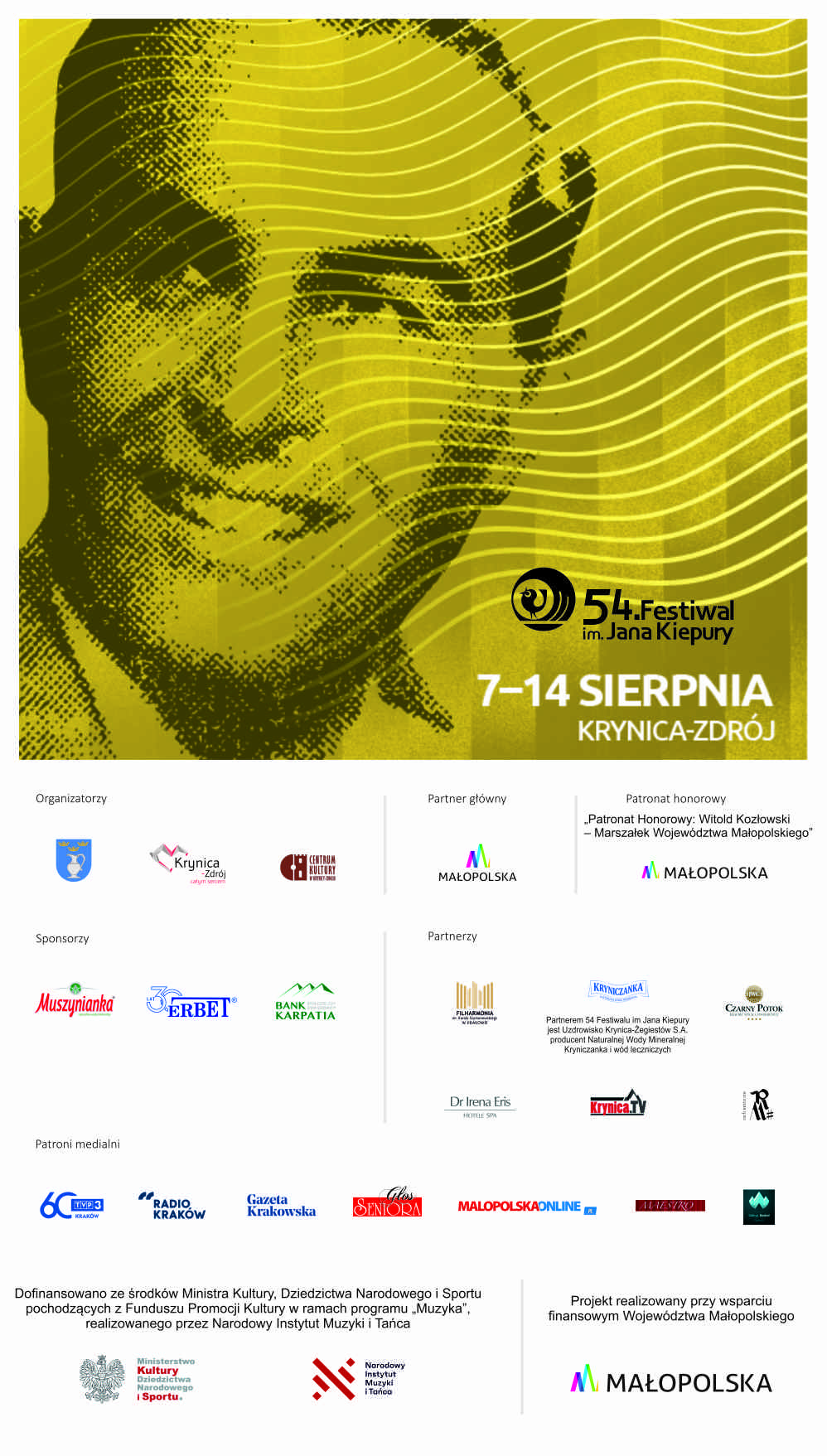 Dwa razy w ramach tegorocznego festiwalu wystąpi Orkiestra Filharmonii Krakowskiej. – Kilka dni temu podpisaliśmy współpracę z Filharmonią Krakowską. Bardzo nas to cieszy, bo daje nam to możliwości organizacji wspaniałych imprez – mówi Julia Dubec-Dudycz, dyrektor CK w Krynicy-Zdroju i dyrektor Festiwalu im. Jana Kiepury. – Chór i Orkiestra Filharmonii Krakowskiej właśnie zainauguruje tegoroczny festiwal. Będzie to bardzo mocne otwarcie tegorocznej edycji i jestem pewna, że przyniesie wiele wzruszeń krynickiej publiczności – podkreśla dyrektor Julia Dubec-Dudycz.