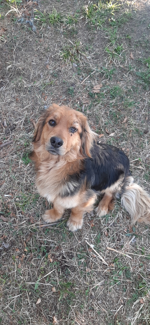Psiak nie dostał jeszcze imienia. Jest to mieszaniec. Ma 8-12 miesięcy, waży ok. 15 kg. Jest bardzo przyjazny dla ludzi. Niestety, ma problemy z jednym okiem. Potrzebuje opieki i domu pełnego ciepła i miłości.