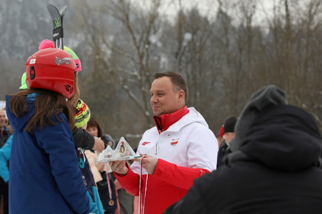 Prezydent wręczył nagrody zwycięzcom narciarskiego VI Memoriału Marii Kaczyńskiej w Rabce-Zdroju; dziękował za zaproszenie i wyraził wdzięczność wszystkim zawodnikom za udział w zawodach.