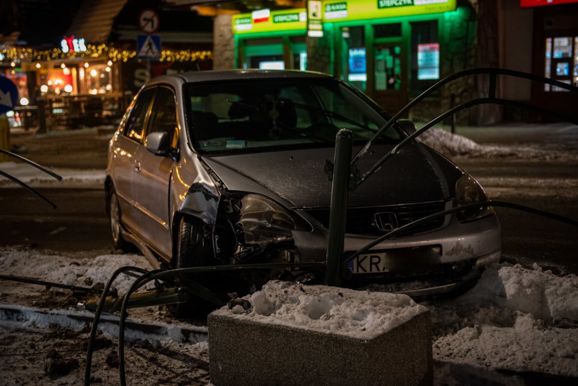 We wtorek przed godziną 19.00 policja w Zakopanem dostała zgłoszenie o uszkodzonym samochodzie stojącym na ulicy. Auto miało wjechać w barierki. Do zdarzenia doszło u wylotu ulicy Krupówki.