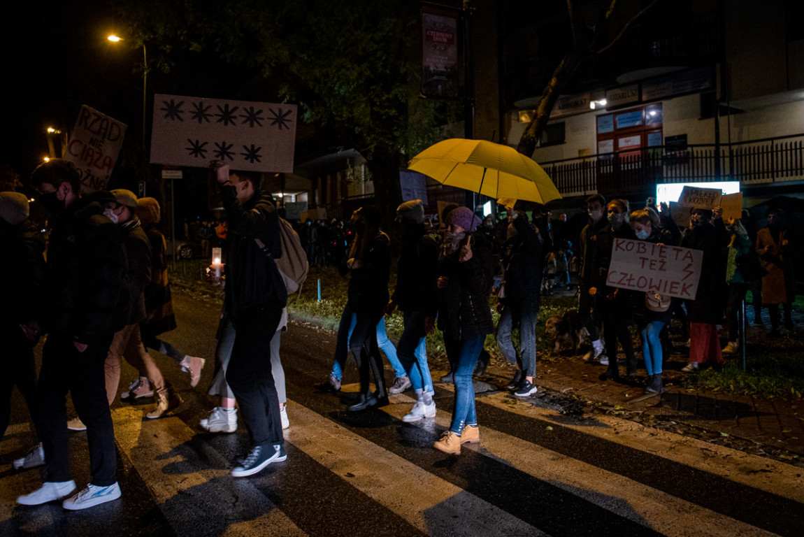 Plac przed zakopiańskim Urzędem Miasta został ogrodzony metalowymi barierami, dlatego tłum ludzi rozciągnął się na chodniku wzdłuż ulicy Kościuszki. Po przemówieniach uczestnicy protestu trzymając transparenty z hasłami: „Wypier... - bach bach albo wolność, albo strach” lub „Nigdy nie zadzieraj z wkur... Góralką”.