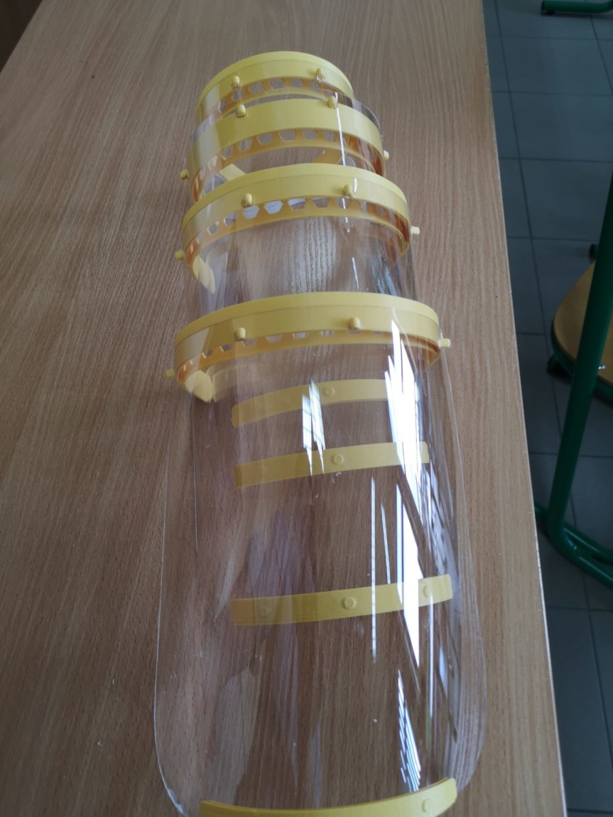 - Zmieniamy się, przychodzimy, żeby uzbroić drukarki ze względu na to, że druk jest dosyć mozolny. Wydrukowanie takich przyłbic zajmuje kilka godzin. Po kilku godzinach trzeba zdjąć wytworzone elementy i skalibrować na nowo drukarkę. Dopiero wtedy można rozpocząć ponowny wydruk. Działamy w systemie zmianowym, pracując na trzy zmiany.
