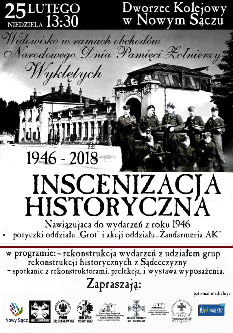 W inscenizacji weźmie udział kilkudziesięciu rekonstruktorów w historycznych mundurach zarówno żołnierzy wojska ludowego, jak również partyzantów. Początek inscenizacji o godzinie 13.30 na dworcu PKP w Nowym Sączu.