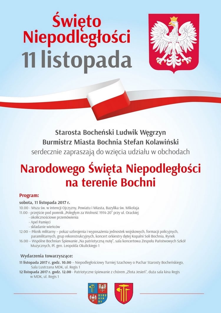 16:00 - Wspólne Bochnian Śpiewanie „Na patriotyczną nutę” - Sala Koncertowa Zespołu Państwowych Szkół Muzycznych, Pl. gen. Leopolda Okulickiego 1