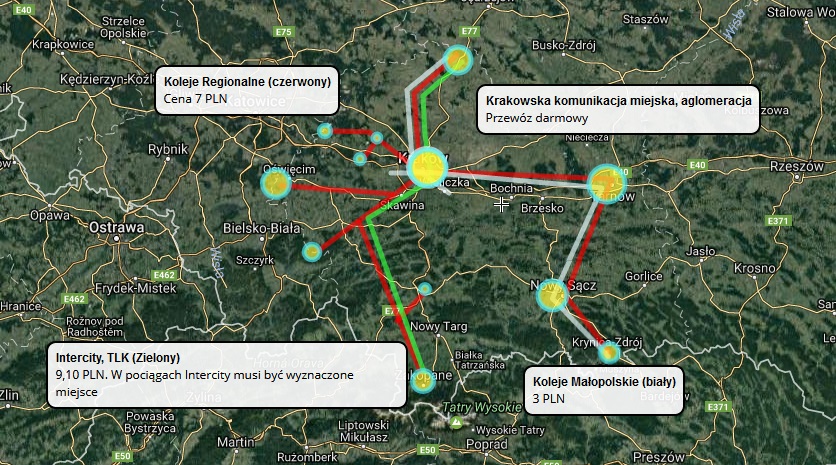 Wśród przewoźników, którzy jeżdżą po małopolskich torach, najdroższe dla rowerzystów są pociągi Intercity i TLK, które łączą Kraków z Miechowem i Zakopanem. Za przewóz roweru musimy zapłacić dodatkowo 9 złotych i 10 groszy, niezależnie od trasy. Jest jeszcze jedno utrudnienie. W pociągach Intercity rower możemy zabrać tylko wtedy, jeśli w jednym z wagonów jest odpowiednie wyznaczone miejsce. W przeciwnym razie wyprawę rowerową możemy zacząć już na dworcu.
