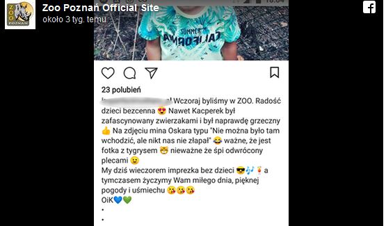 To jednak nic w porównaniu z zachowaniem kompletnie nieodpowiedzialnych rodziców małego chłopczyka, którzy w poznańskim ZOO wystawili dzieciaka przez ogrodzenie, tuż przy wybiegu dla tygrysów.