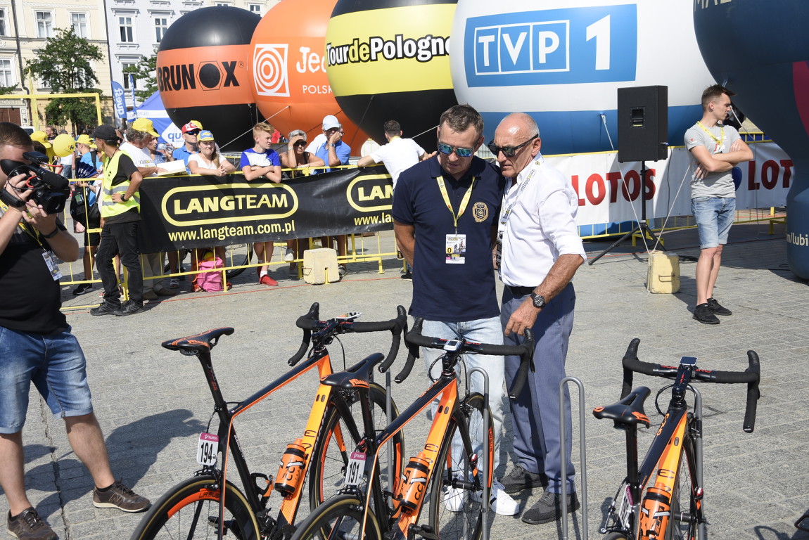 18.01 - Na starcie Czesław Lang, dyrektor Tour de Pologne, podziwiał rowery, na których jeżdżą kolarze. Pan Czesław to wciąż aktywny kolarz!