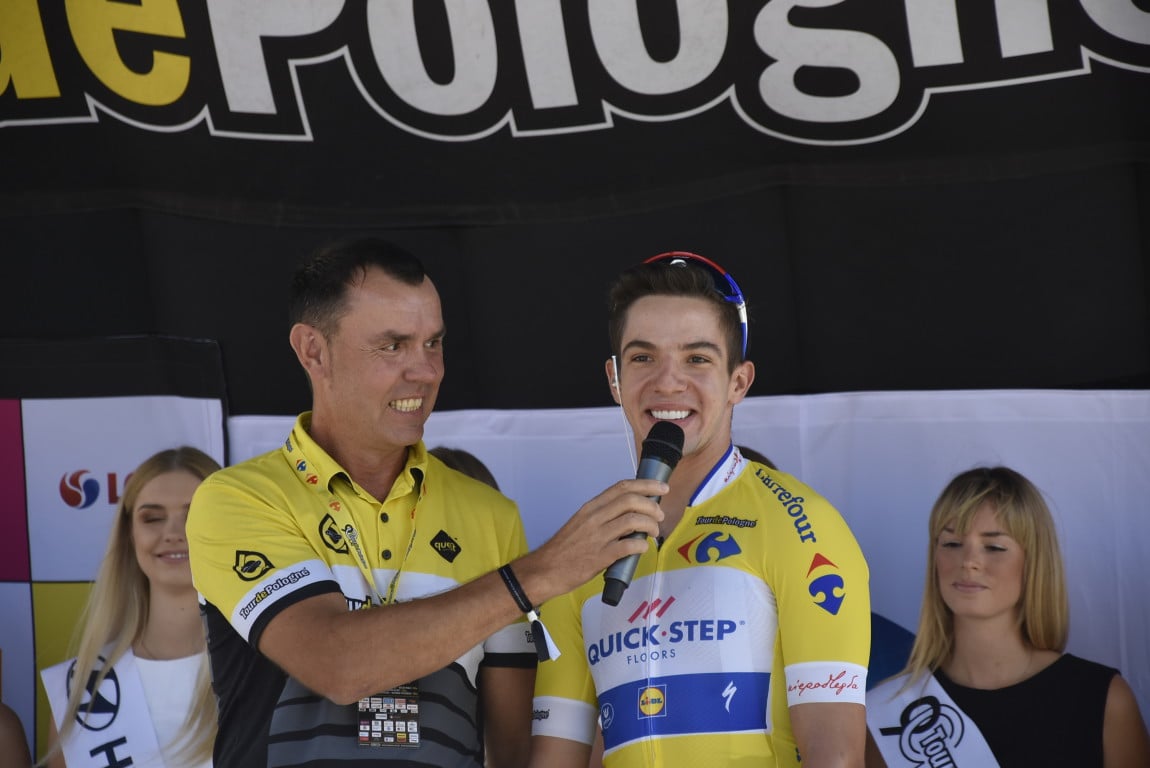 Z przodu pracuje Jan Tratnik (CCC Sprandi Polkowice) i Marek Rutkiewicz (Polska), za nimi ze stratą 2 minuty 50 sekund jadą Sander Armee (Lotto Soudal) i Hector Carratero (Movistar). 3 minuty i 20 sekund traci peleton.