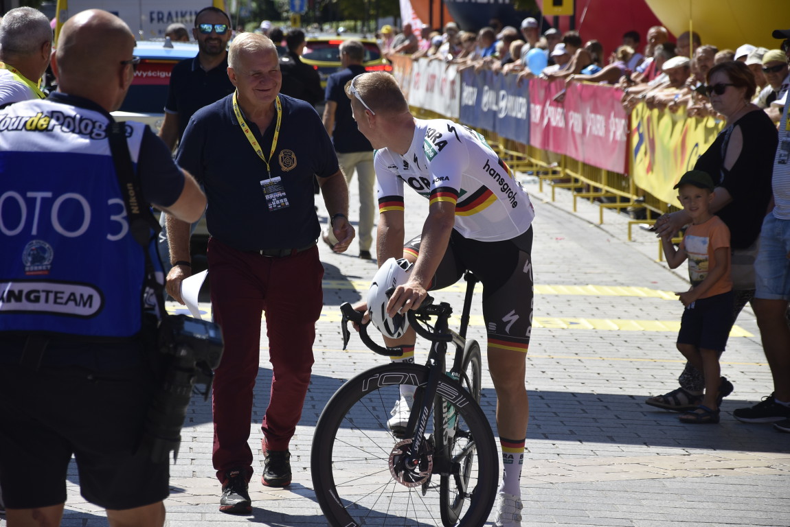 16.35 - Na mecie pojawił się Czesław Lang, który wzbudził szeroki aplauz wśród publiczności.