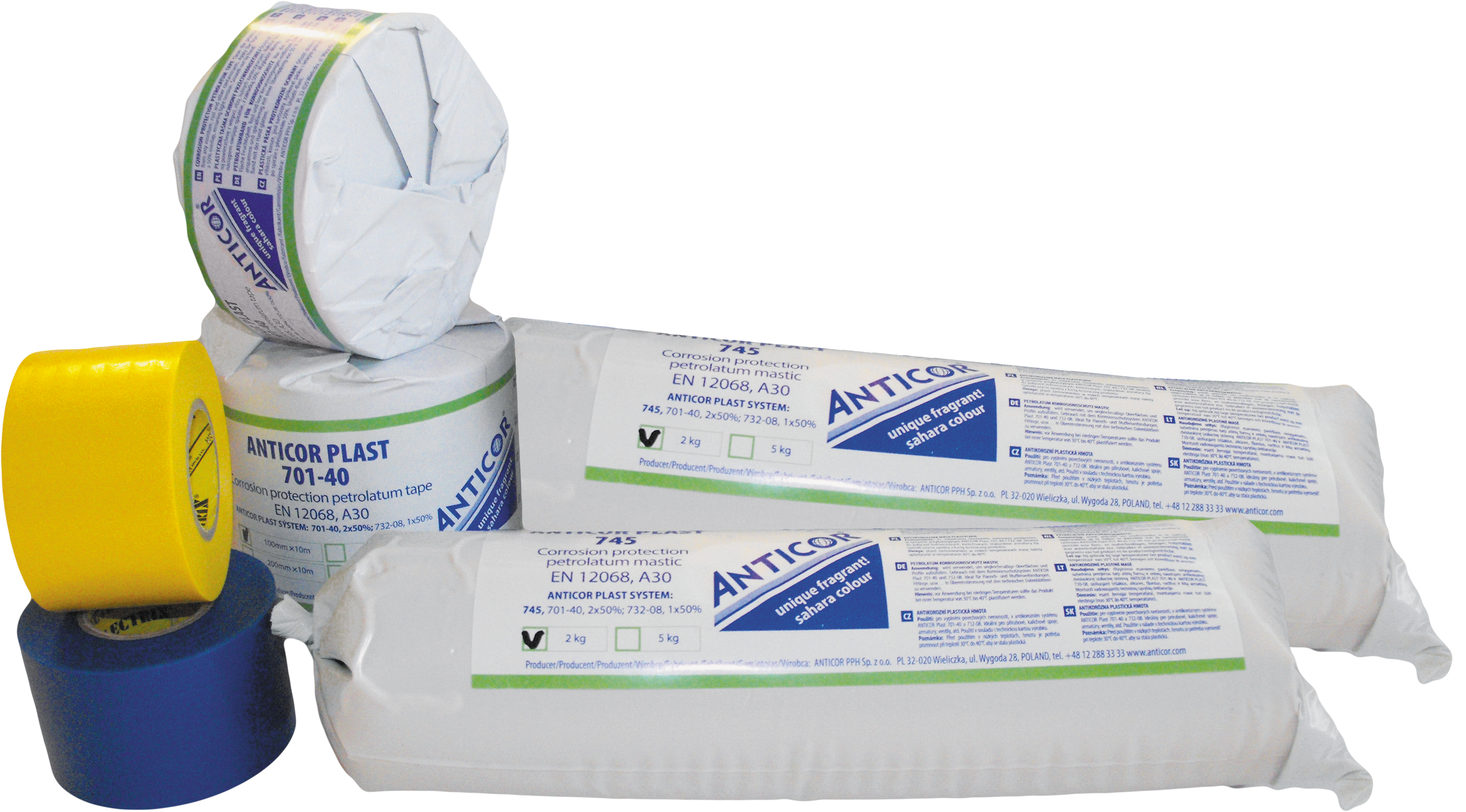 Firma ANTICOR jako producent posiada bardzo szeroki wybór rozmiarów taśm, zasadniczej ochrony antykorozyjnej (30, 50, 100, 150, 200 mm x 10 m), a po wcześniejszym ustaleniu warunków jest w stanie wyprodukować długość i szerokość odpowiednią dla potrzeb klienta. Masa plastyczna ANTICOR Plast 745 oferowana jest w 2 kg opakowaniach.