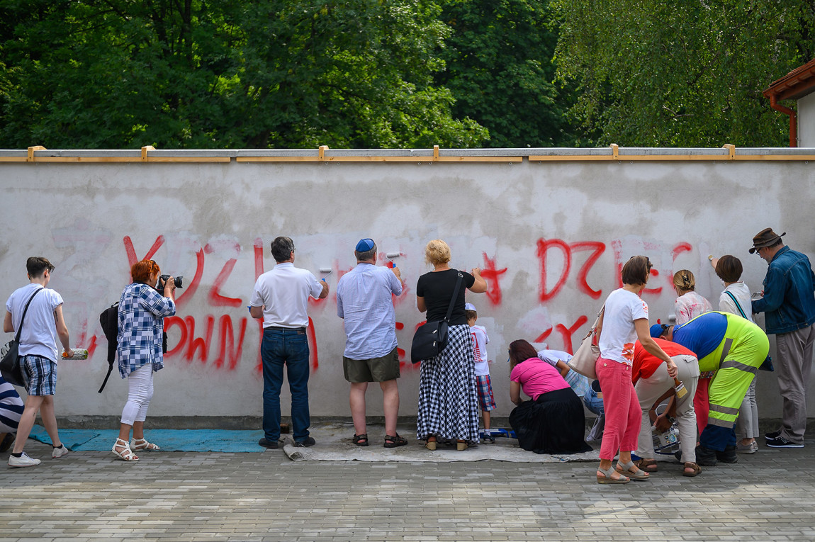 Szuka go teraz policja. Prezydent Tarnowa napisał na Facebooku, że miasto pokryje koszty zamalowania napisu. W poniedziałek tarnowianie zamalowali napis. Spontaniczną akcję zorganizował Komitet Opieki nad Zabytkami Kultury Żydowskiej, który doprowadził do remontu cmentarza żydowskiego. W akcji wzięli też udział prezydent Tarnowa Roman Ciepiela, poseł Urszula Augustyn oraz miejscy radni - Tomasz Olszówka i Agnieszka Danielewicz.