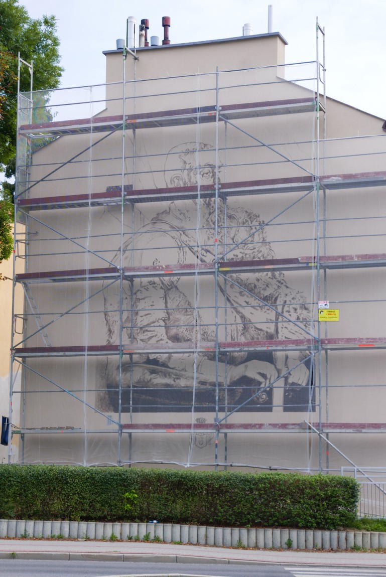 Mural powstaje w oparciu o grafike Wojciecha Gersona z XIX wieku. Gotowy ma byc w drugiej połowie września.