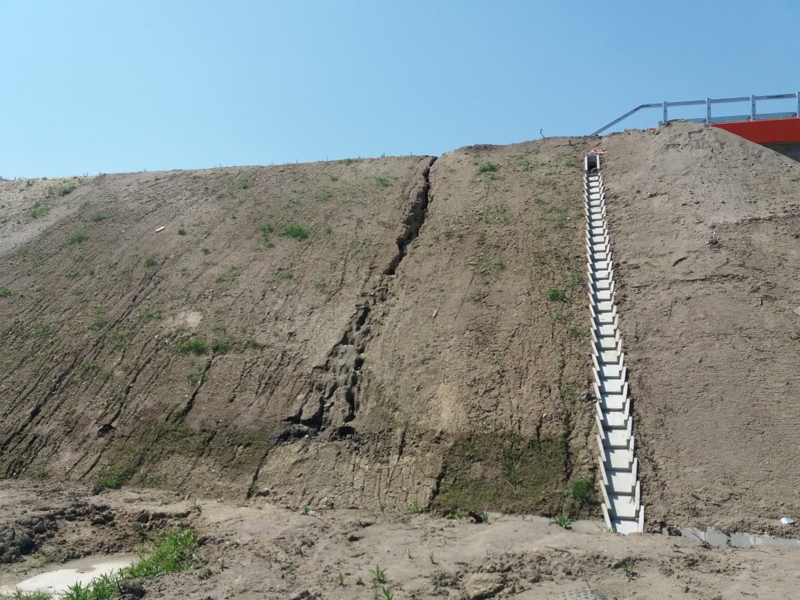Andrzej Jaskot wyjaśnia również, że pęknięcia w skarpach, które się pojawiają są także spowodowane tym, że jeszcze nie urosła posiana tam niedawno trawa.