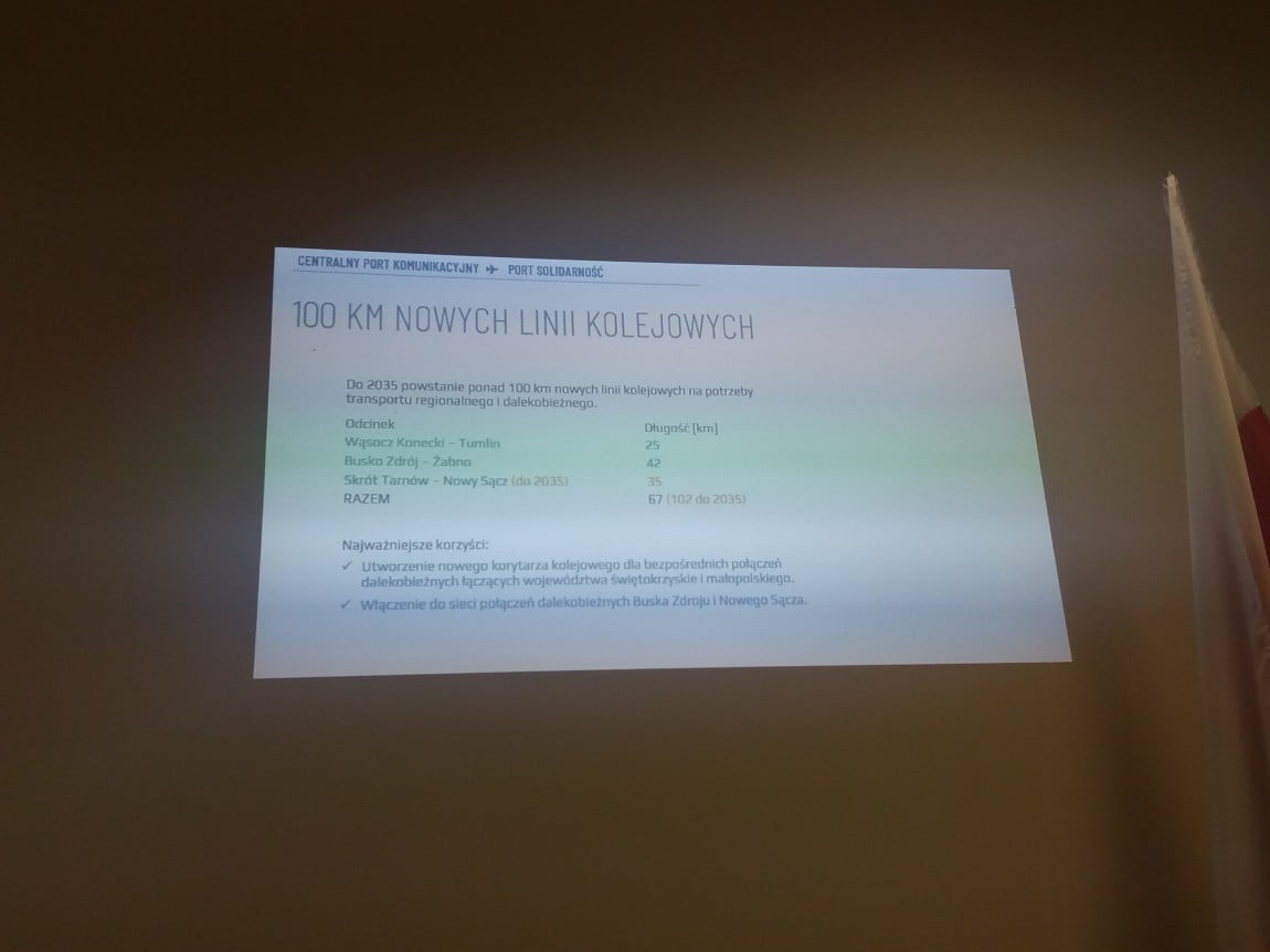 "Należy wybudować łączniki, które połączą Centralną Magistralę Kolejową na wysokości miejscowości Wąsocz Konecki z Tumlinem oraz Busko Zdrój z Żabnem. Potrzebny będzie również nowy most na Wiśle. Uważam, że ta inwestycja jest bardzo potrzebna, bo to jeden z najdłuższych odcinków w Polsce, które są pozbawione kolejowej przeprawy mostowej" - mówił Mikołaj Wild.