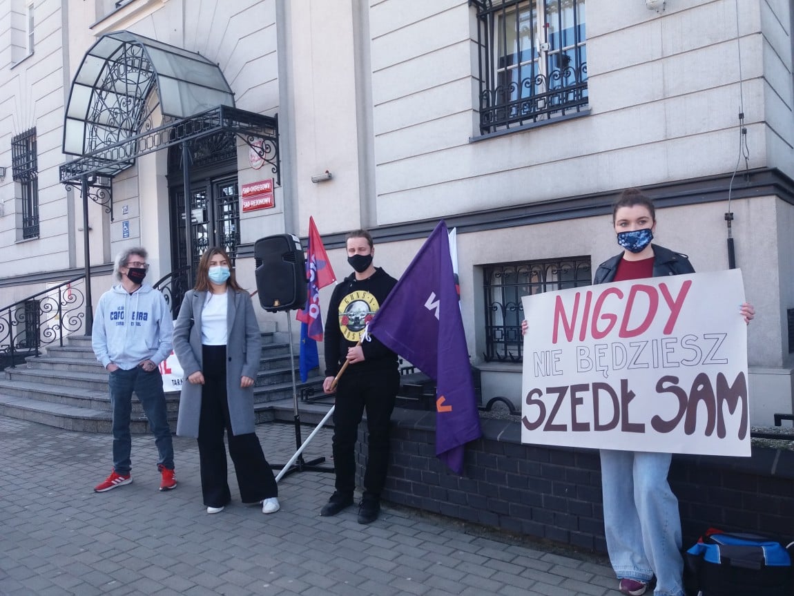 W czasie rozprawy przed sądem, przeciwko działaniom policji, protestowało kilkoro członków Lewicy oraz Wiosny. "Jest to precedensowa sytuacja, w której rządzący stawiają tak naprawdę społeczeństwo przed wyborem: albo będziemy wam odbierać wam wasze prawa i macie siedzieć cicho, albo będziecie protestować. Wtedy was będziemy ciągać po sądach. Nie ma z naszej strony zgody na takie praktyki" - przekonywał Jacek Jabłoński, który sam otrzymał także zarzuty. Zdaniem policji organizował protest w Tarnowie po opublikowaniu wyroku Trybunału Konstytucyjnego w sprawie aborcji.