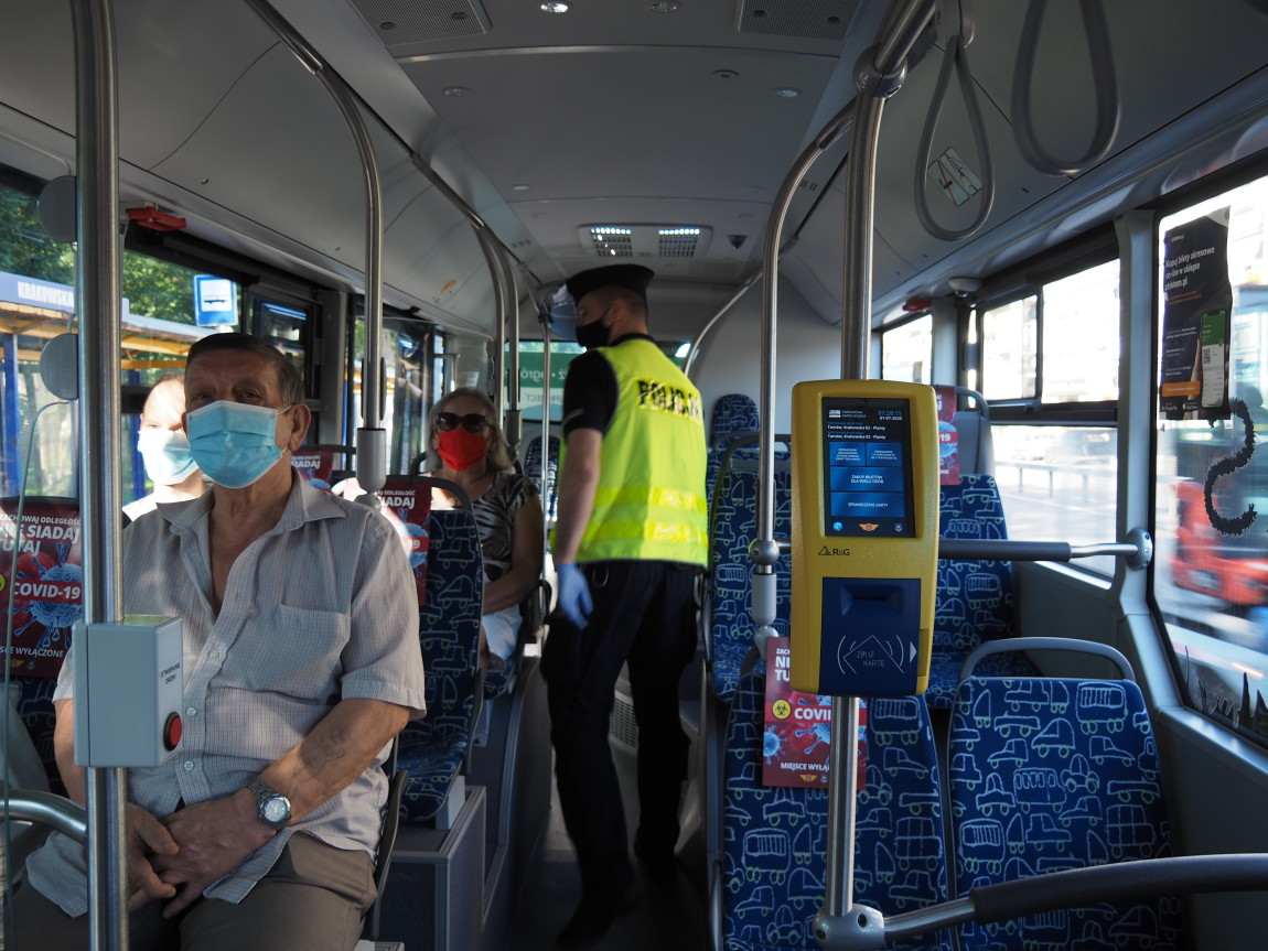 Tarnowska policja sprawdza, czy pasażerowie autobusów noszą maseczki. Środowa akcja nastawiona jest jednak na profilaktykę, a nie na karanie. Termin jej przeprowadzenia nie jest przypadkowy, bowiem od środy w autobusach tarnowskiego MPK uruchomiono klimatyzację i zamknięto okna. Policjanci oprócz kontroli wręczali maseczki tym osobom, które ich nie miały w autobusach.