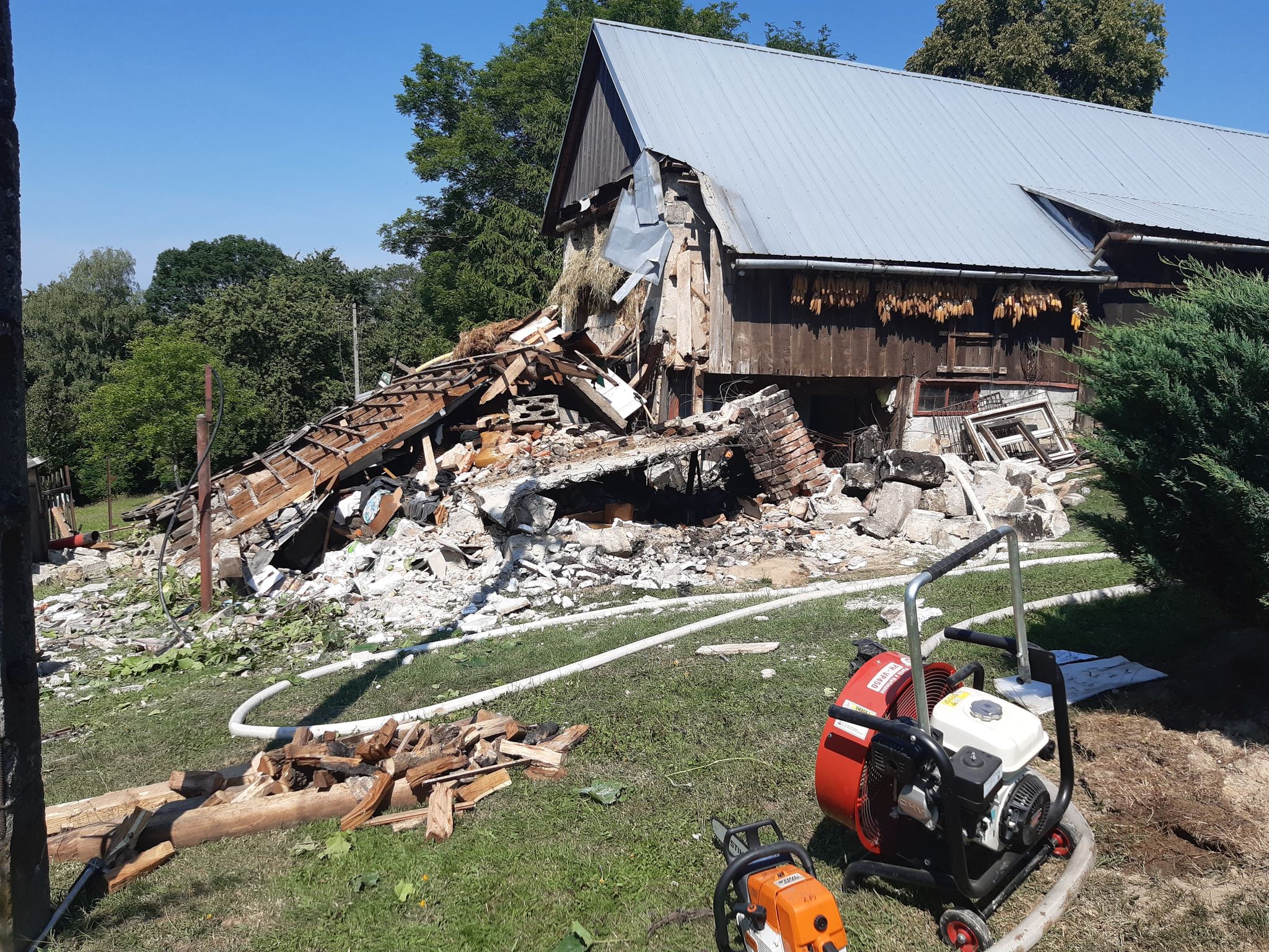 Na miejscu pracuje kilkudziesięciu strażaków, w tym także specjalistyczna grupa poszukiwawczo - ratownicza z Nowego Sącza. Budynek jest całkowicie zniszczony.