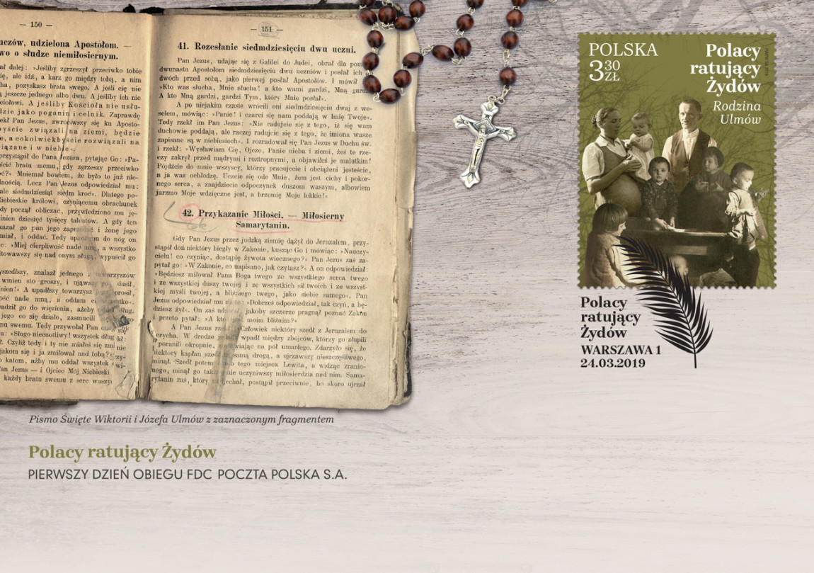 Dzień Pamięci Polaków ratujących Żydów, który przypada w niedzielę, będzie obchodzony w Polsce w tym roku po raz drugi. Święto to w 2017 r. zainicjował prezydent Andrzej Duda. Jego data, 24 marca, to dzień w którym zamordowani została przez niemieckich żandarmów rodzina Józefa i Wiktorii Ulmów, Niemcy zabili również ich dzieci i ukrywaną przez nich rodzine żydowską. Z okazji tegorocznych obchodów Poczta Polska wydała specjalny znaczek z fotografią rodziny Ulmów.