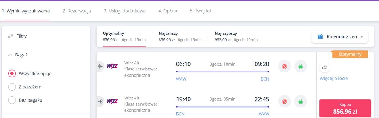 - ustawienie dogodnych przedziałów czasowych dla wylotu i przylotu;