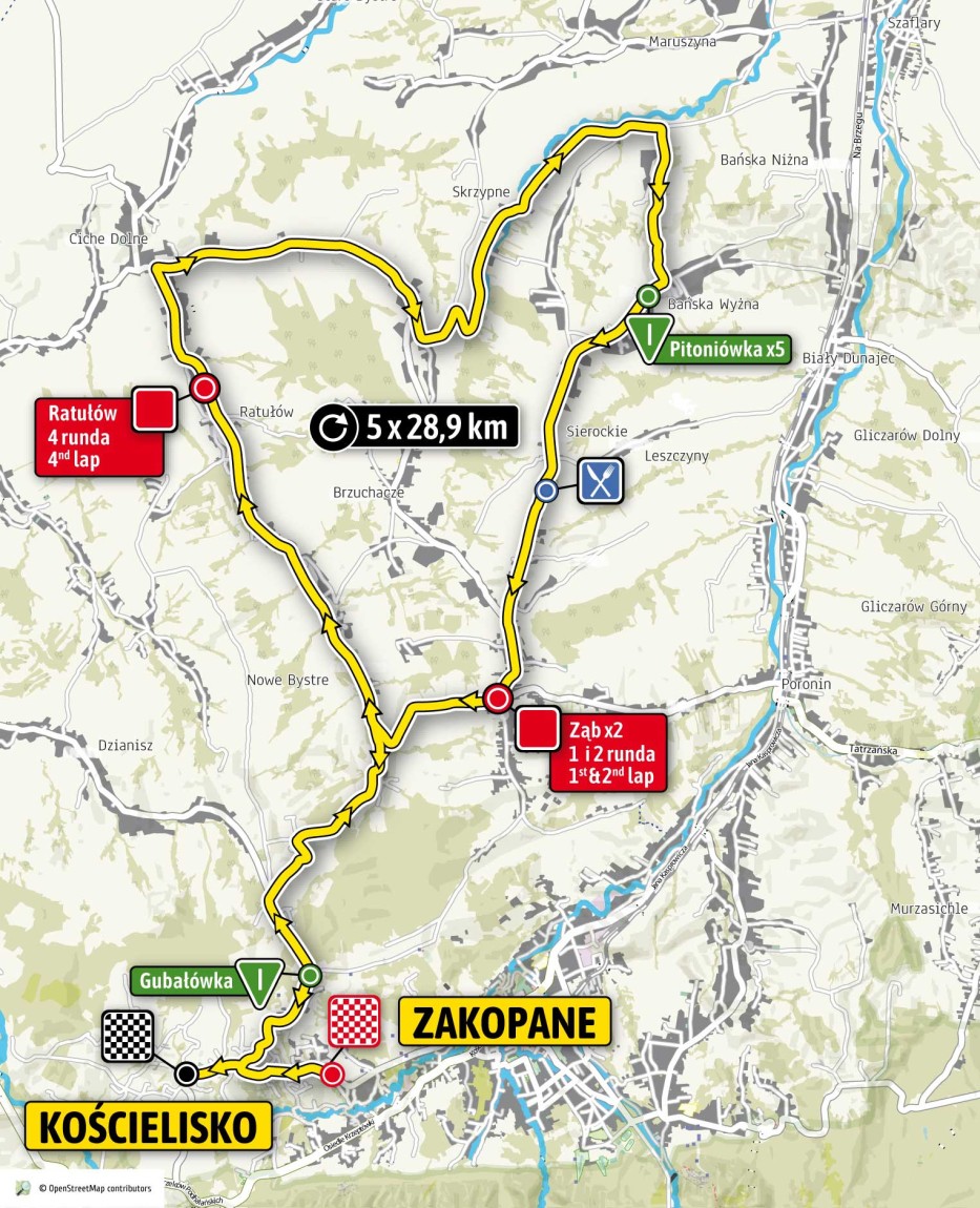 Kolarze rozpoczynają wyścig o 14:15 w Zakopanem. Pojadą między innymi przez ulicę Powstańców Śląskich, Kościelisko, Butorowy Wierch, Gubałówkę, Nowe Bystre i Bańską Niżną i Wyżną. Ulica Powstańców Śląskich w Zakopanem zamknięta zostanie na całej długości prawie na cały dzień. Całkowite zamknięcie dróg, po których pojadą kolarze nastąpi około 13:30. Dodatkowe utrudnienia między 10:00 a 18:00 może spowodować wyścig Mini Tour de Pologne, którego uczestnicy pojadą zamkniętymi ulicami Kościeliska.