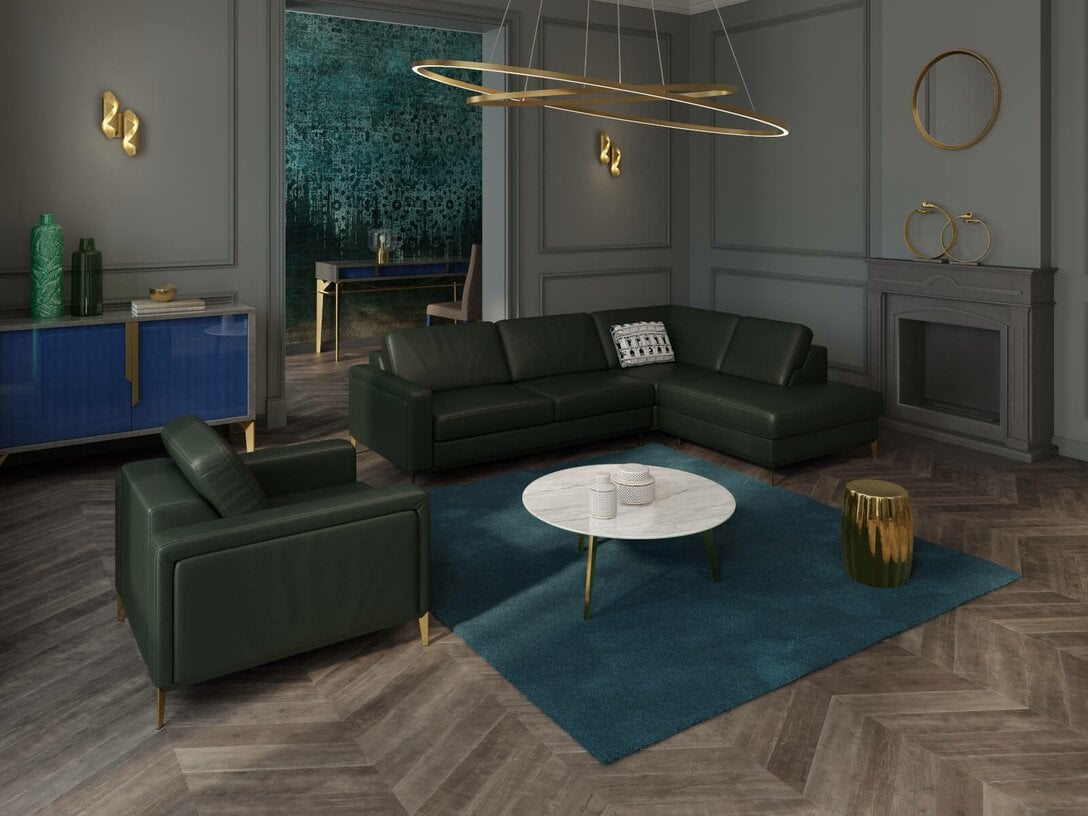 Możesz wykorzystać tę modę w postaci zastosowania mocnego elementu kolorystycznego, np. w odcieniach kobaltu, rdzawego pomarańczu czy burgundy – może być to nawet duży mebel, jak narożnik: https://www.kler.eu/pl/c/narozniki.