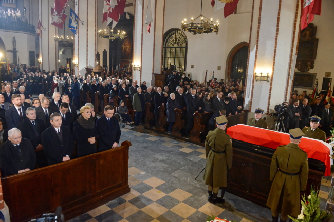 W uroczystości udział biorą m.in. rodzina zmarłego b. premiera, prezydent Andrzej Duda oraz pierwsza dama Agata Kornhauser-Duda, marszałkowie Sejmu i Senatu: Marek Kuchciński i Stanisław Karczewski, wicemarszałkowie Sejmu i Senatu: Beata Mazurek, Ryszard Terlecki, Małgorzata Kidawa-Błońska, Bogdan Borusewicz, a także premier Mateusz Morawiecki z ministrami, prezes PiS Jarosław Kaczyński oraz b. szef MON Antoni Macierewicz.