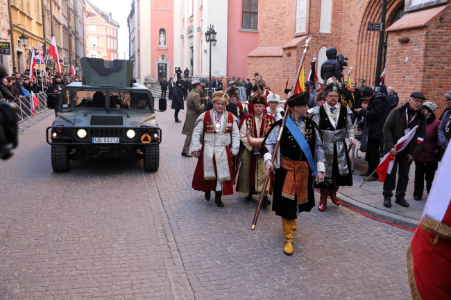 Kondukt z trumną b. premiera Jana Olszewskiego, po mszy pogrzebowej w archikatedrze, przeszedł ulicami Starego Miasta przed pomnik Powstańców Warszawskich przy pl. Krasińskich. Trumna przewożona była na lawecie armatniej a Jana Olszewskiego żegnały tysiące warszawiaków.