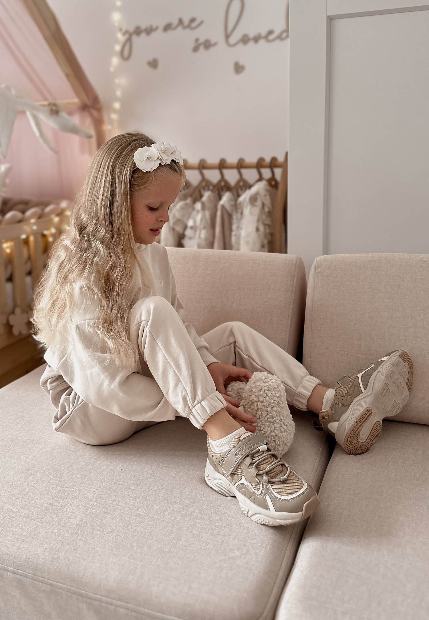 Wykonane z dzianiny w połączeniu ze skórą naturalną zostały zaprojektowane z myślą o najbardziej aktywnych dziewczynkach. Na wierzchu posiadają ochronną membranę co sprawia, że nawet deszcz nie będzie stanowił przeszkody przed letnimi zabawami. Ich modny, beżowy kolor, przeplatany z jaśniejszymi dodatkami, sprawia, że z łatwością skompletujesz je z każdą barwą ubrania.