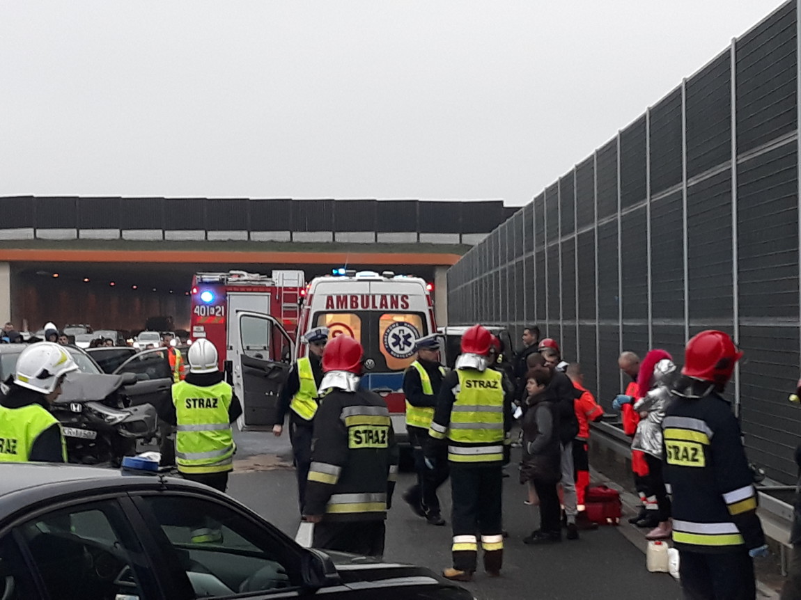 Siedem osób - w tym kobietę w ciąży i dwoje dzieci - przewieziono do szpitala.