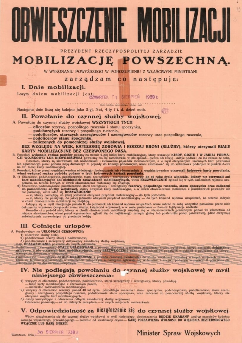 - Marszałek Edward Rydz-Śmigły wydał tzw. dyrektywę ogólną, w której czytamy: