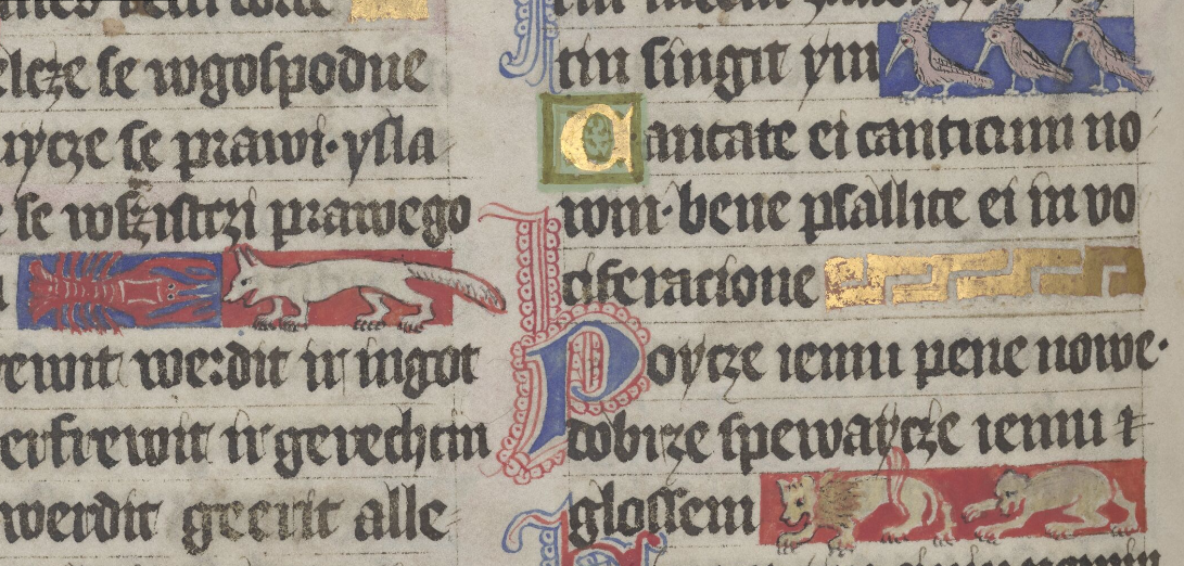 Detale z Psałterza Floriańskiego, XIV/XV w., Biblioteka Narodowa w Warszawie. Zdigitalizowana wersja: https://polona.pl/item/52212659/12/