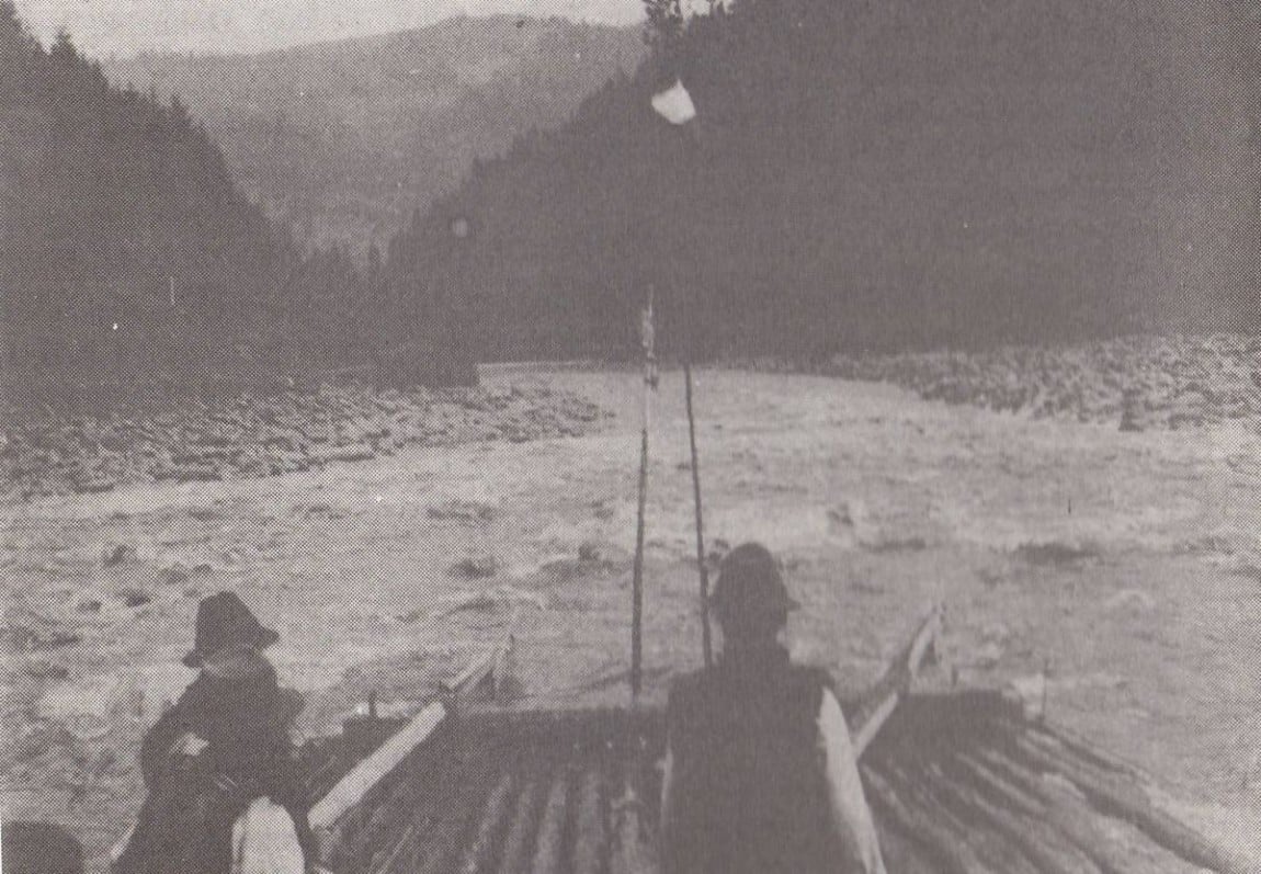 Spław tratwami 1935 r. (fot. Tadeusz Dohnalik/Wikipedia)