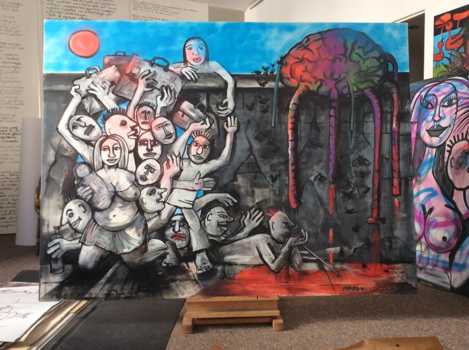Dostaje kawę "na kartki", podsłuchuje miasto, utrwala osobowości spod "ciemnej gwiazdy" i lokalnych kloszardów. Zabiera jednak przede wszystkim głos w sprawie kobiet, bo któż inny zrozumie je lepiej.W atelier Iwony Siwek Front